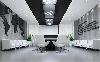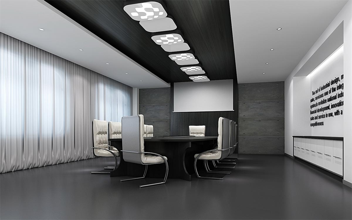 這類科技感辦公室裝修需要通過冷灰的色調(diào)才能彰顯其高端大氣的科技感,因此,選用最為經(jīng)典的黑白灰色調(diào)進(jìn)行搭配設(shè)計,簡約的幾何式線條,黑白色的交替搭配(黑色墻面與白色天花,或白色墻面黑色家具),整塊的落地窗給足自然光的照射,搭配燈光的光、影映襯,與現(xiàn)代簡約的冷色調(diào)家具搭配,讓整個辦公環(huán)境科技感十足。
