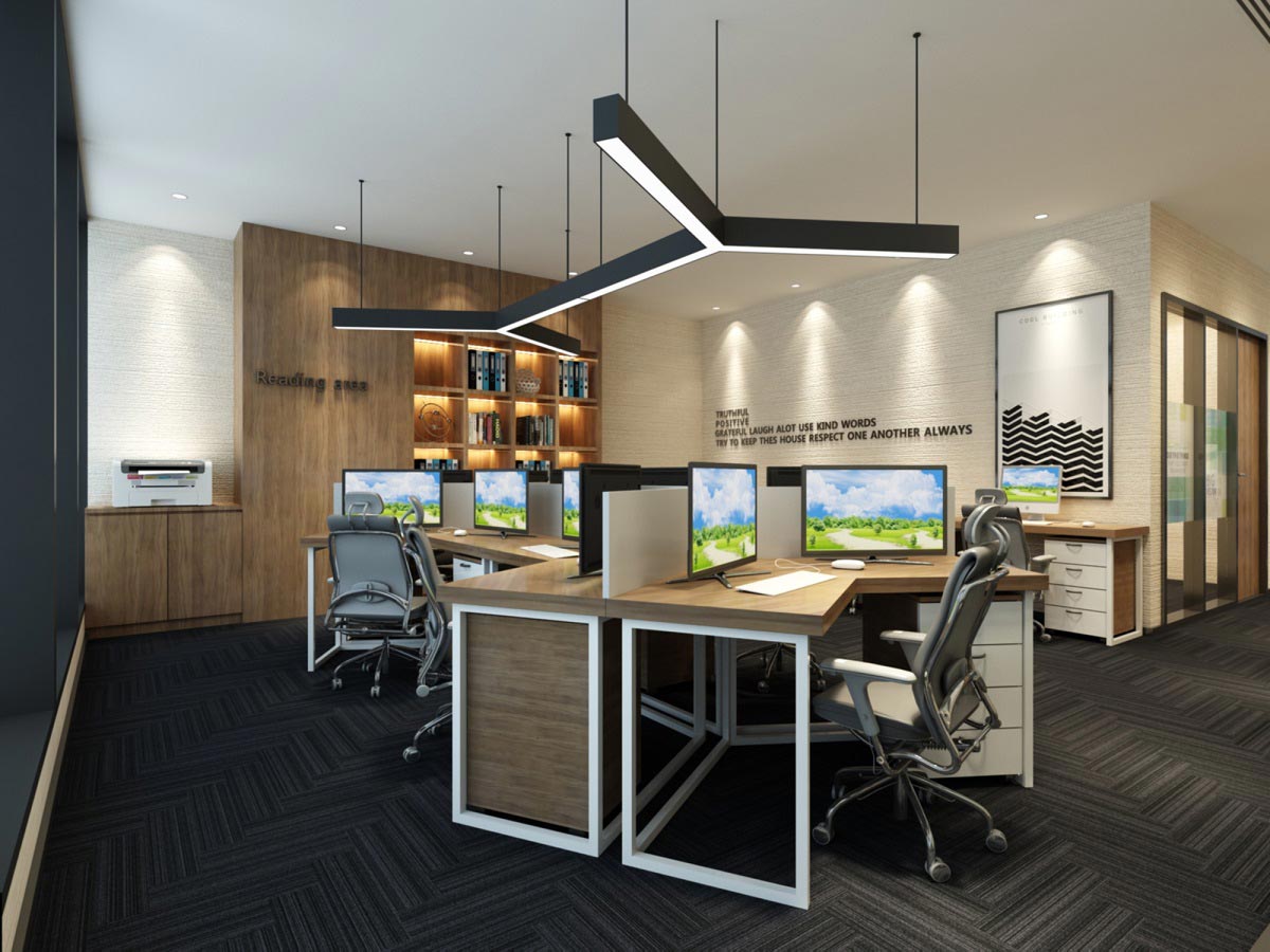 該公司的辦公室設計效果圖摒棄傳統(tǒng)的前臺,通過開放式的設計,讓前臺門面與接待融為一體,接待區(qū)用仿餐廳設計,加上燈光的點綴和中國風的掛畫,營造出文藝而又舒適的氛圍。其他辦公區(qū)域也同樣采用簡單的原木色家具,黃色與白色的搭配 整體色感趨于柔和,易于接近。