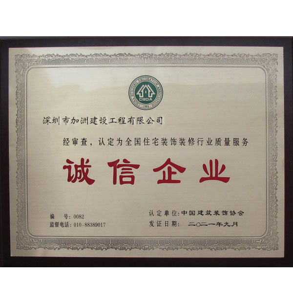 深圳市裝飾行業(yè)協(xié)會會員證書
