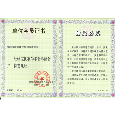 深圳市建筑裝飾產業(yè)聯(lián)合會會員證書